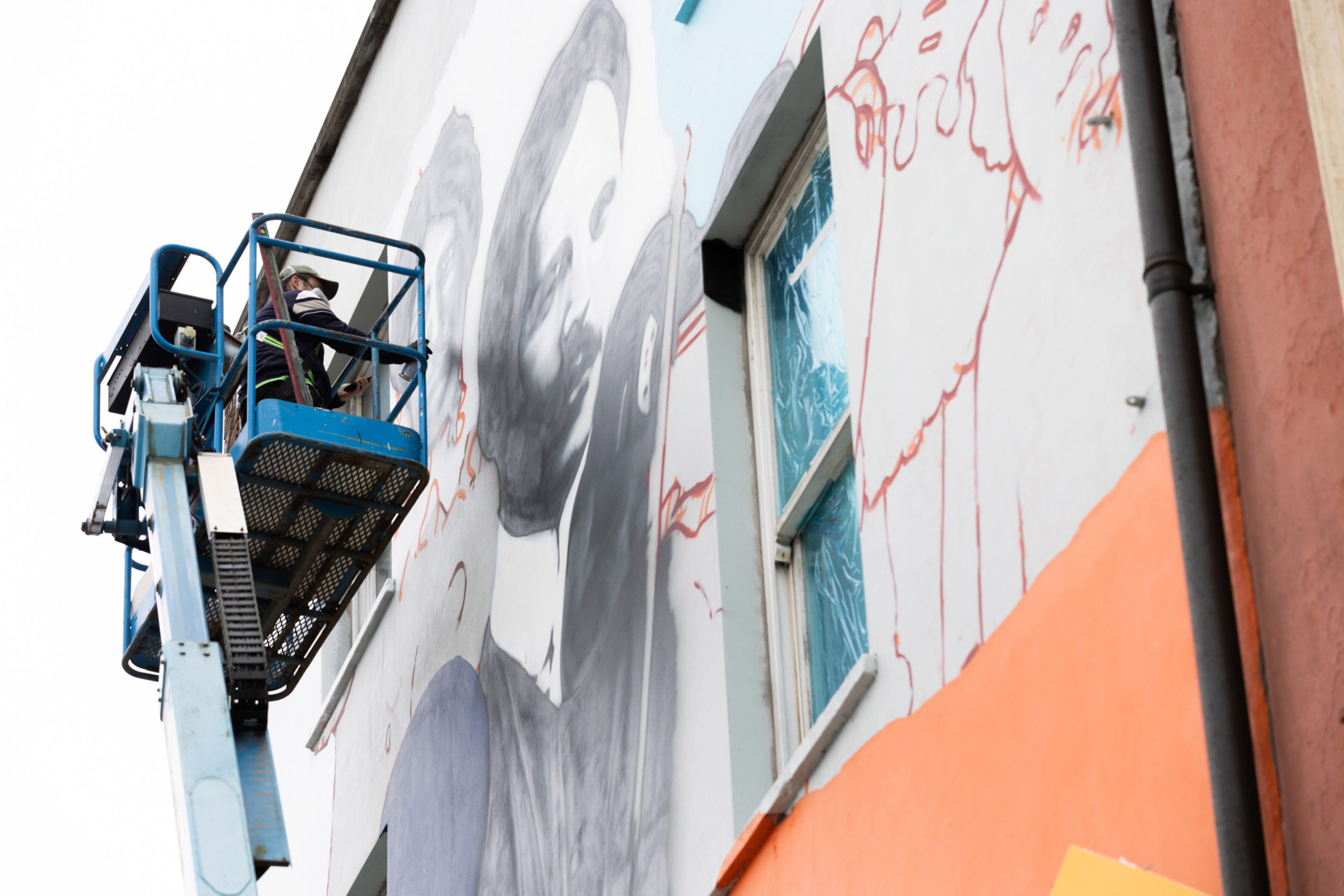 The mural on the corner of Bridge Street and Coburg Street, a collaboration between co-organisers of Ardú Shane O’Driscoll and Peter Martin.